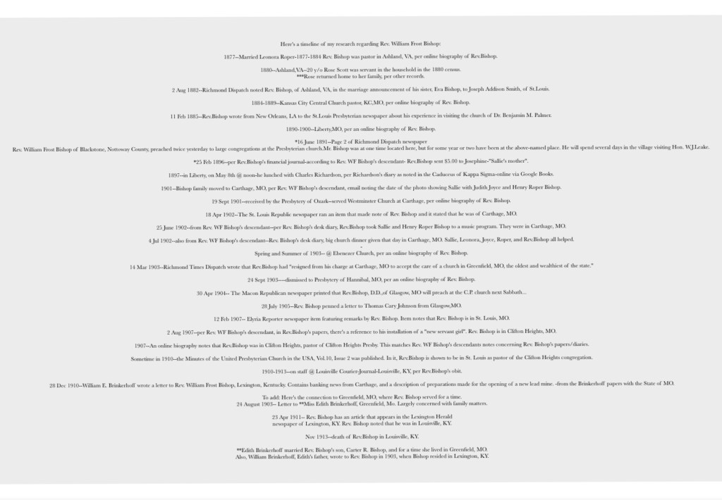 Timeline for Clergyman W.F. Bishop:
