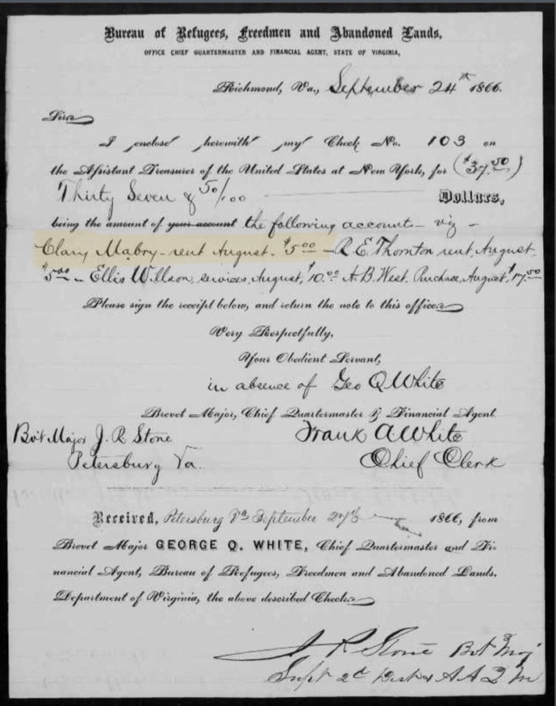 In that the Freedmen’s Bureau helped Clara as they did, just what was this Bureau and who were the men mentioned in this document with Clara Mabry?