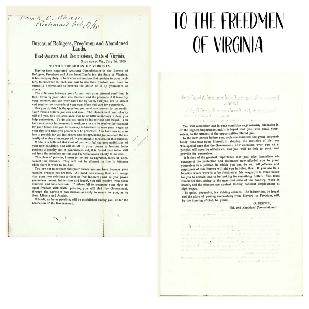 Records of the Field Offices for the State of Virginia, Bureau of Refugees, Freedmen, and Abandoned Lands, 1865–1872, is courtesy of Smithsonian Institution’s Online Archives. There is an excellent history write-up that prefaces the images. One portion reads, “In late May 1867, Maj. Gen. Schofield, who served as both Commander of the 1st Military District and Assistant Commissioner for Virginia, issued orders appointing military commissioners to oversee the administration of justice in Bureau subdistricts throughout Virginia, giving them exclusive jurisdiction and power to decide whether a case would be tried by a civil court or a military commission.”