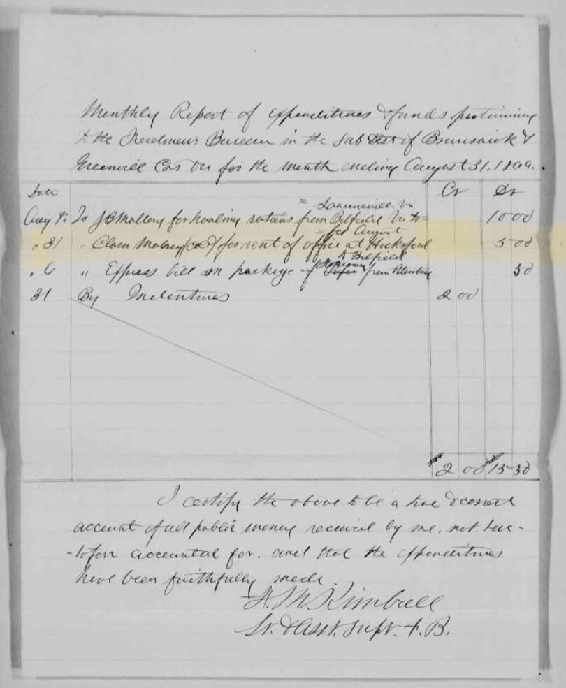 Full disclosure: I did find record of the Bureau paying rent for an office ($5.oo ) to Clara Mabry, for August, 1866. According to the Westegg Inflation Calculator, $5.oo is the equivalent of $89.68 in 2020 U.S. dollars.