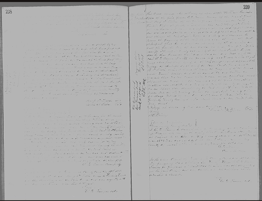 A deed of bargain and sale. Lo and behold, on page 238, there was the land sale from Benjamin D. Tillar and his wife, Sallie (Sallie Ann Jones (1855-1911), to my Emeline Eppes!