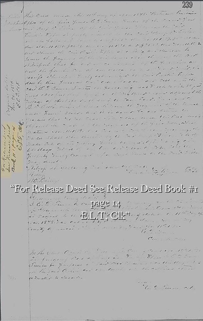 My Eppes cousin, (S.H.), located this document about a decade ago and it remains as awesome a document as it was when first discovered. This record shows that Emeline was a land owner, a landowner in need of a mortgage loan, but still a landowner.