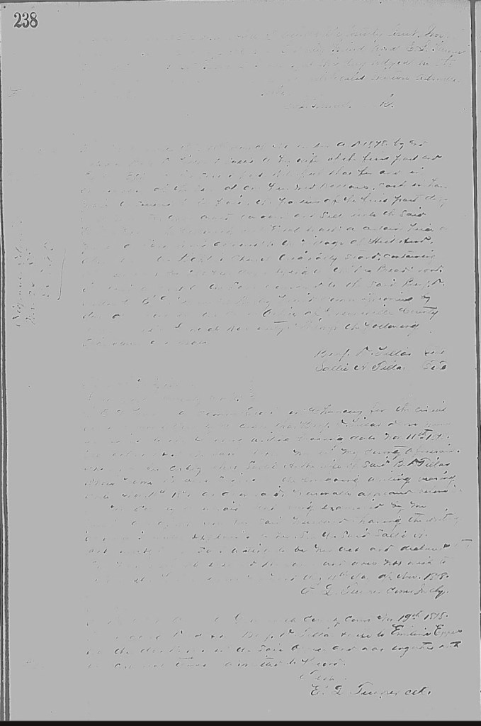 Hmm, it’s easy to say “don’t assume,” it’s a bit more difficult to actually put that into regular practice. That is to say. I’d really assumed/presumed/imagined that Emeline had owned her land for a number of years before she needed this loan. Well, upon my closer inspection of the page immediately preceding Emeline’s 11 Nov 1878 deed of trust, I saw that Emeline’s name appeared again.