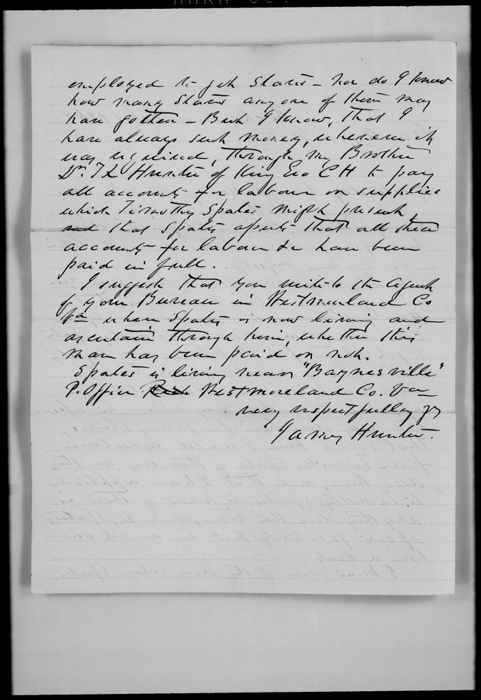 We learn that Timothy Spates was living in Westmoreland County, Virginia in 1868. A letter to the Bureau dated February 8, 1868, documented that Timothy Spates was “authorized to employ all the labor…”.