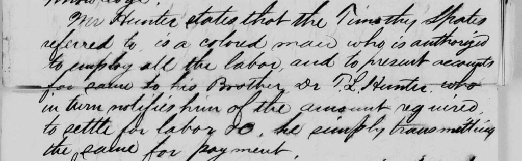 Thanks to the records of The Freedmen’s Bureau, we know a bit about what Timothy was doing in the early part of 1868. A certain man by the name of Henry Robinson brought a labor complaint to the Bureau for working for but not being paid by Timothy Spates: