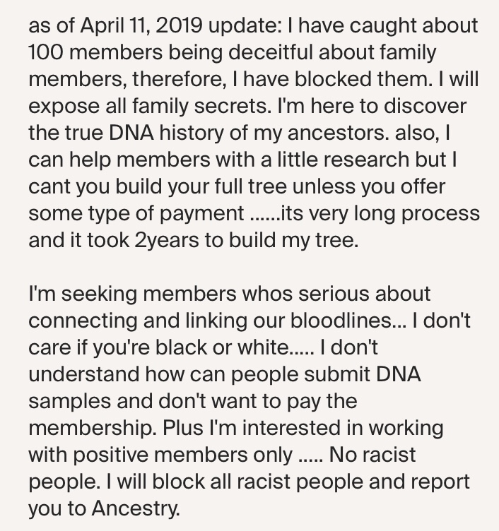 This cuts directly to those who are hoarding information and family photos as if they’re some type of genealogy golem, with no interest in sharing the heaps of pictures, records, and ephemera that they have amassed through whatever measures and yet still feel entitled to siphon from public family trees on Ancestry.com and the like.