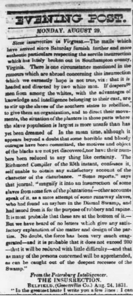 Nat Turner’s Revolt (1831) Encyclopedia Virginia Entry