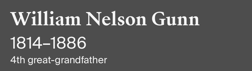 According to AncestryDNA ThruLines, William Nelson Gunn Jr (1814-1886) is my 4th great-grandfather. While there are times that the ThruLines are more through than lines, in this instance, I think that the proposed Gunn connection deserves a closer look.