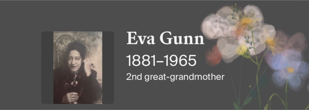 Eva was the daughter of Raburn Gunn, born about 1834 in Crawforville, Taliaferro County, GA. AncestryDNA testing results hypothesize that Raburn’s father was William N. Gunn…