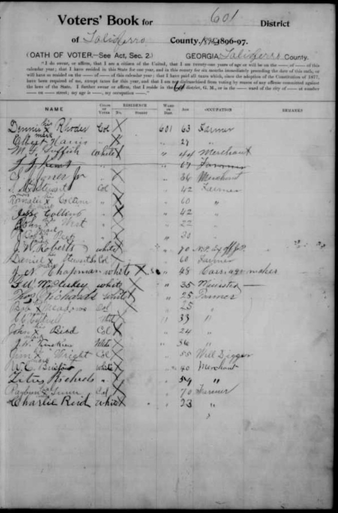 Georgia, County Voter Registrations, 1856-1941 70 year old Raburn’s (birth year is noted as 1824) Georgia voter registration for 1901.