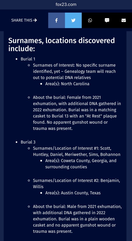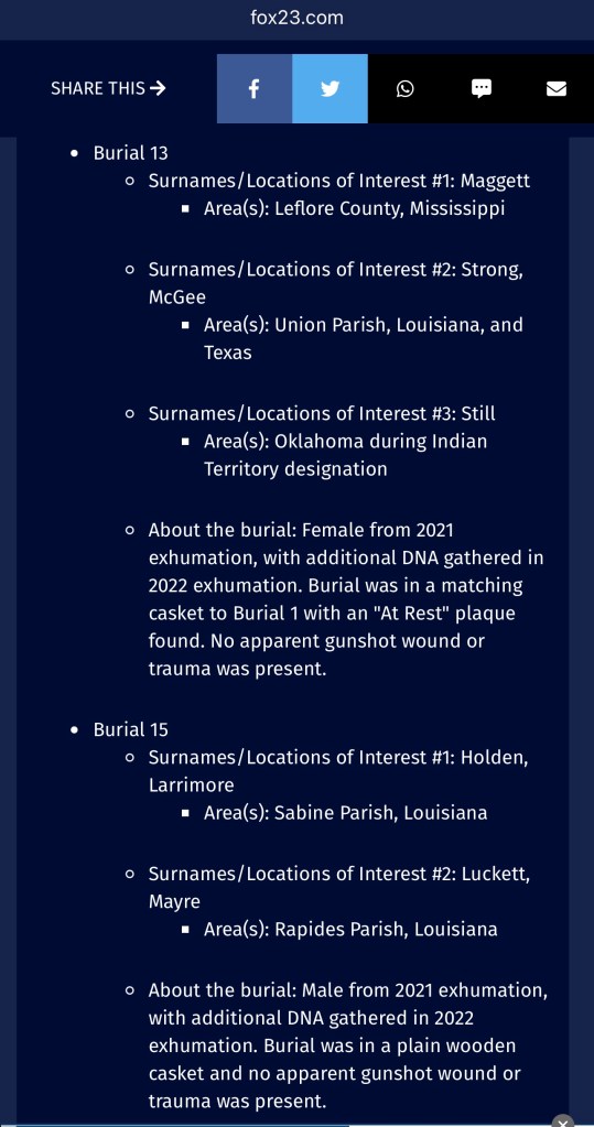 The City of Tulsa said, of the 22 remains that had DNA extractions, six produced genetic genealogy profiles that can be tied to potential surnames and locations of interest. Individuals may recognize those surnames in their family tree.